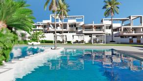 - přízemní apartmán s obývacím pokojem spolu s kuchyňským koutem, s třemi ložnicemi, s dvěma koupelnami a vlastním bazénem o celkové ploše 170,51m2 - od 417.890 EUR včetně DPH ( předání 08/2024 )